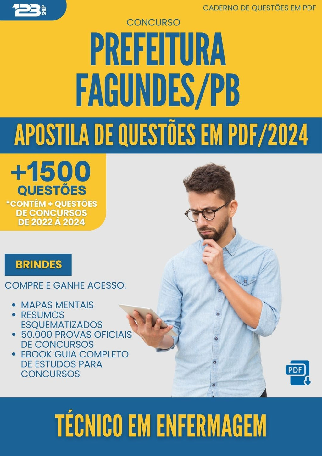 Apostila de Questões para Concurso Tecnico Em Enfermagem da Prefeitura Fagundes Pb 2024 - Mais de 1.500 Questões
