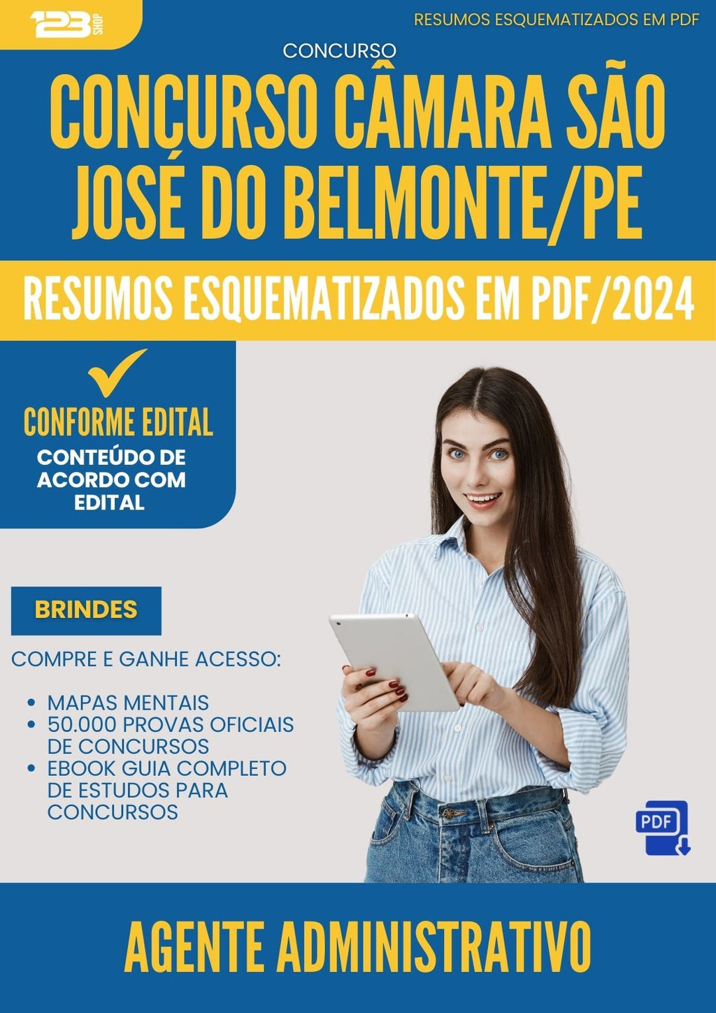 Resumos Esquematizados para Concurso Apostila Agente Administrativo Camara Sao Jose da Prefeitura Belmonte 2024 - Conteúdo de Acordo com Edital