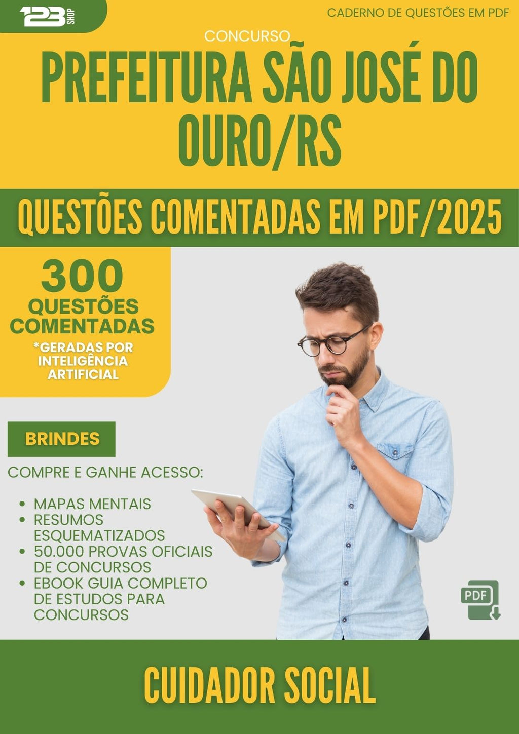 1000 Questões Comentadas para Concurso Cuidador Social Sao Jose Do da Prefeitura Ouro Rs 2025 - 400 Questões