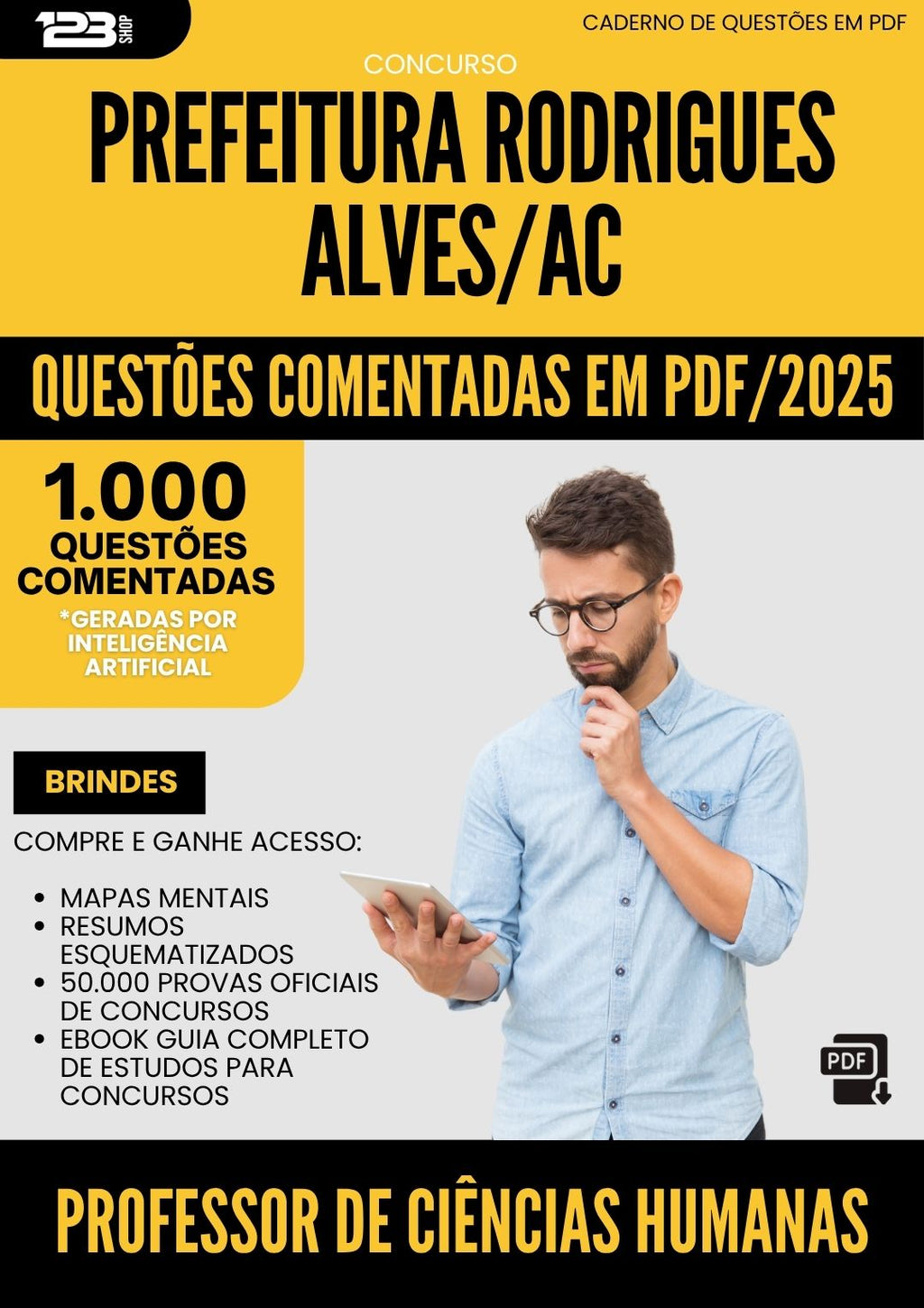 1000 Questões Comentadas para Concurso Professor De Ciencias Humanas da Prefeitura Rodrigues Alves Ac 2025 - 1000 Questões