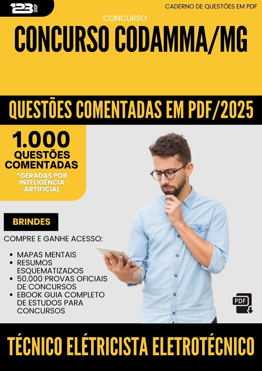 Com isso geramos 200 questões comentadas que vão lhe auxiliar a estudar de forma mais eficiente, concentrando seus esforços nos assuntos que realmente importam e economizando tempo na preparação. Ela contempla 1000 questões distribuídas entre as disciplinas de Conhecimentos Básicos e Conhecimentos Específicos exigidas no edital desse concurso.