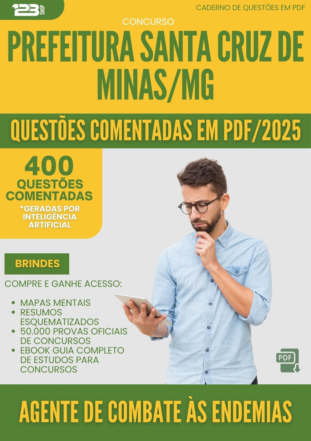 Com isso geramos 400 questões comentadas que vão lhe auxiliar a estudar de forma mais eficiente, concentrando seus esforços nos assuntos que realmente importam e economizando tempo na preparação. Ela contempla 400 questões distribuídas entre as disciplinas de Conhecimentos Básicos e Conhecimentos Específicos exigidas no edital desse concurso.