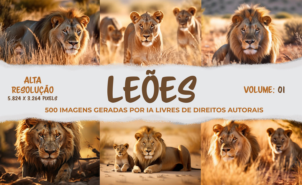 Não perca mais tempo procurando imagens de qualidade inferior ou enfrentando problemas com direitos autorais. Com a coleção "500 Fotos de Imagens de Leões geradas por IA e livres de Direitos Autorais em Alta Resolução", você terá à sua disposição um tesouro visual para aprimorar suas criações e cativar seu público.