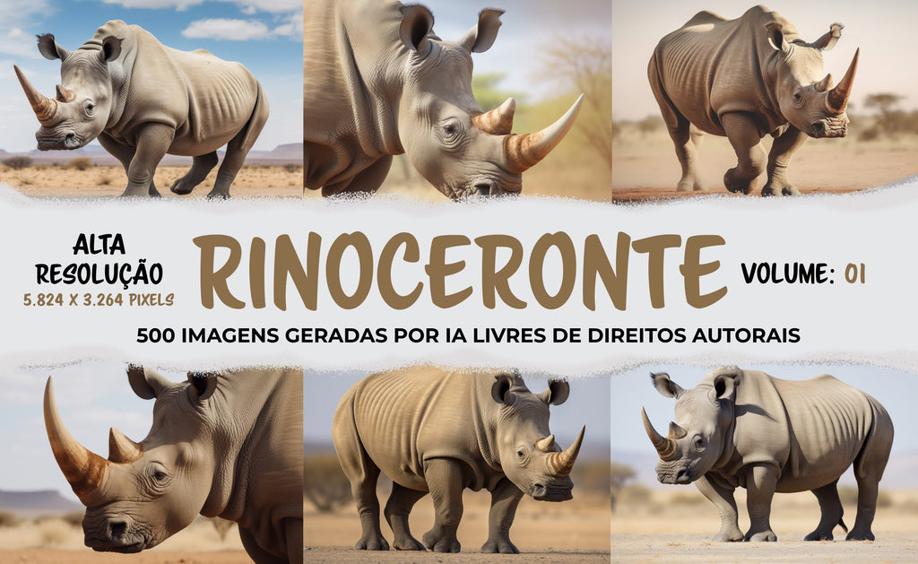 Não perca mais tempo procurando imagens de qualidade inferior ou enfrentando problemas com direitos autorais. Com a coleção "500 Fotos de Imagens de Rinocerontes geradas por IA e livres de Direitos Autorais em Alta Resolução", você terá à sua disposição um tesouro visual para aprimorar suas criações e transmitir a essência majestosa desses impressionantes animais.