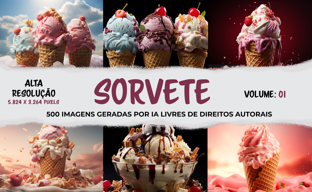 Com essa coleção, você terá acesso a 500 fotos de alta qualidade, todas cuidadosamente selecionadas para transmitir a cremosidade, as cores vibrantes e a indulgência dos sorvetes. Cada imagem desperta os sentidos, fazendo com que você sinta o frescor e o sabor delicioso dessas delícias geladas.