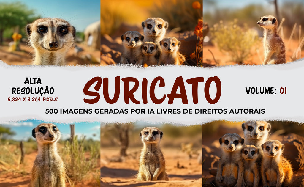 Apresentamos com entusiasmo nossa nova coleção: "500 Fotos de Imagens de Suricatos geradas por IA e livres de Direitos Autorais em Alta Resolução". Prepare-se para entrar no mundo adorável e cheio de energia dos suricatos, onde sua vivacidade, curiosidade e união em grupo serão capturadas de maneira excepcional.