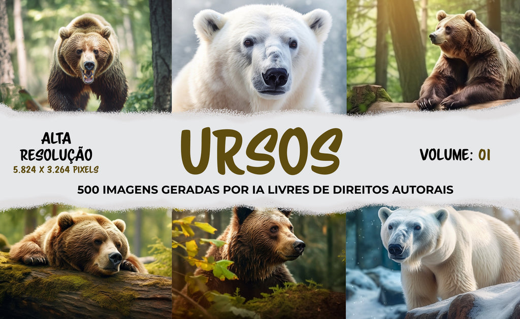 Com essa coleção de imagens de ursos, você terá acesso imediato a 500 fotos de alta qualidade, todas cuidadosamente selecionadas e tratadas por nossos designers especializados. Essas imagens retratam a grandiosidade, a expressividade e a presença magnética dos ursos em diferentes espécies e ambientes, proporcionando uma experiência visual envolvente.